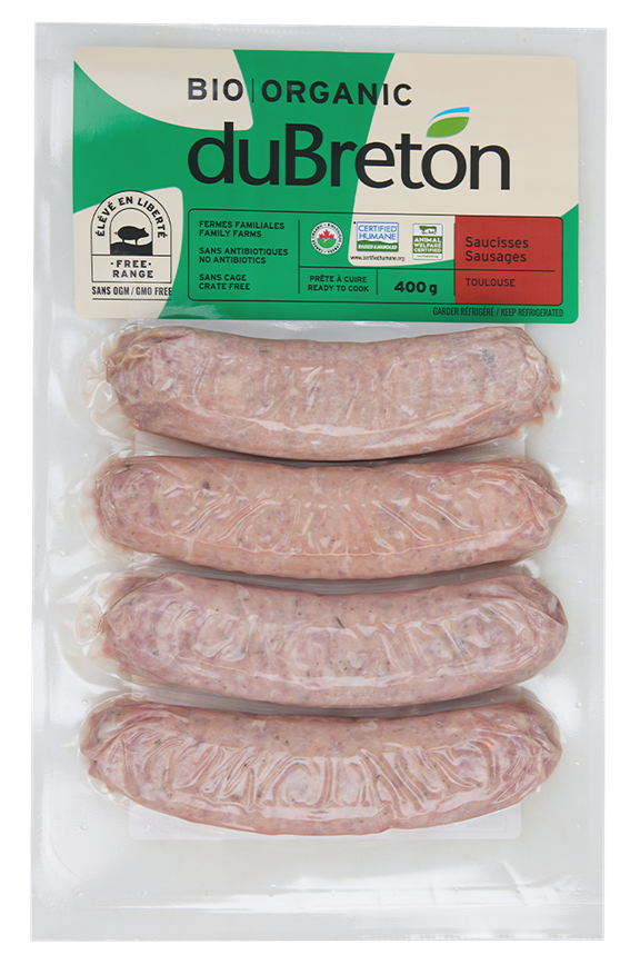 Ces saucisses Toulouse sont faites de porc biologique nourri de grains végétaux, sans OGM et certifié bien-être animal. Les certifications suivantes vous garantissent la qualité de nos produits. Elles sont sans gluten.
